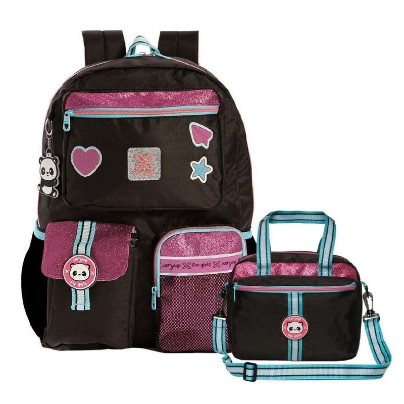 Kit Mochila De Costas Panda 16 Utility Preto +Lancheira