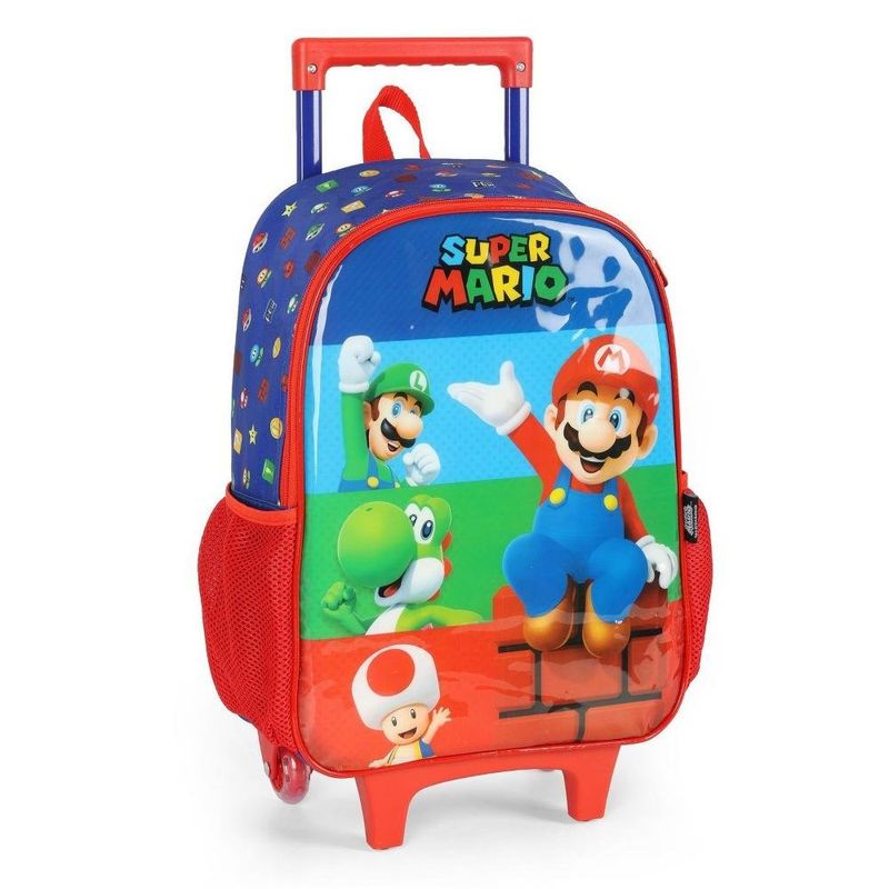 Com o Kit Mochila De Rodinha e Alça Mario e Amigos + Lancheira, os pequenos fãs de Mario podem levar seus personagens favoritos para todas as aventuras escolares!