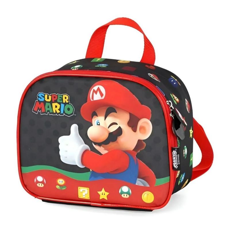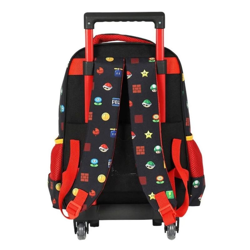 Kit Mochila de Rodinha e Lancheira com Alças Super Mario Joinha - Preta Luxcel