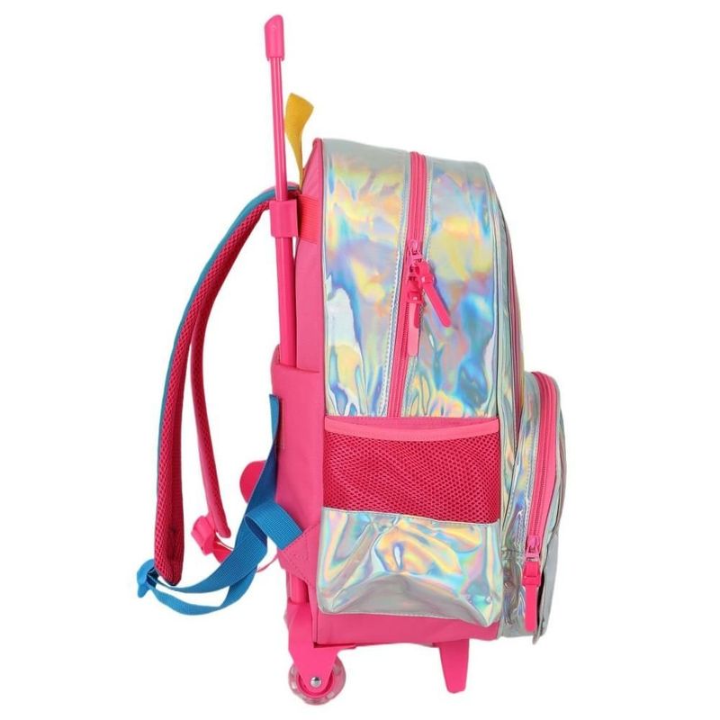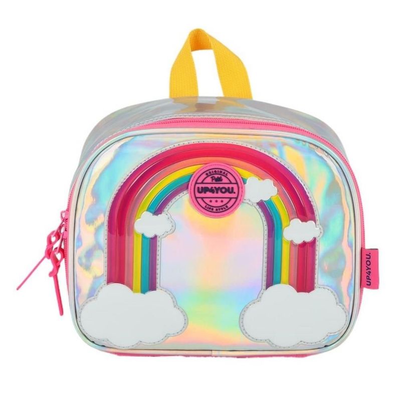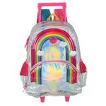O Kit Mochila de Rodinha e Alça Rainbow Prata Metal + Lancheira é perfeito para quem deseja combinar estilo, praticidade e um toque moderno nas atividades do dia a dia. Com um design encantador em tom prateado metálico e detalhes em arco-íris, este kit é ideal para levar para a escola ou passeios, garantindo conforto e organização.