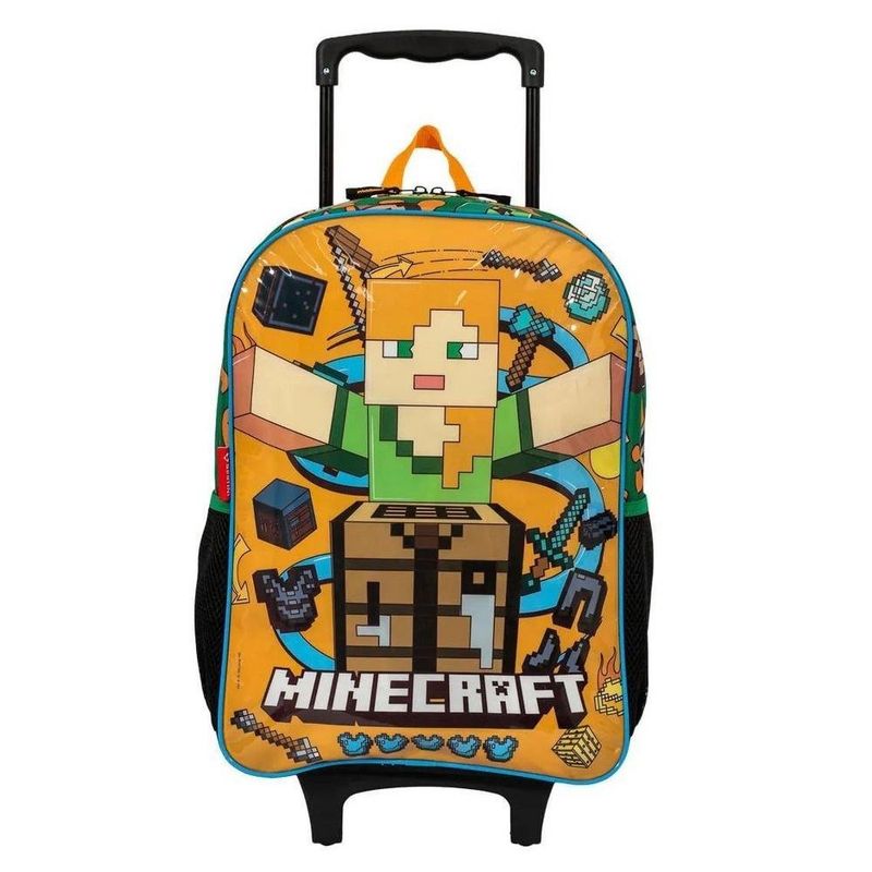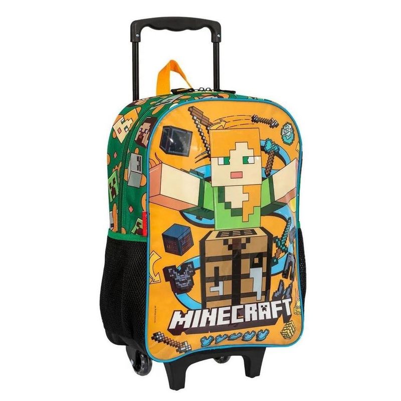 A Mochila Minecraft Funtage, inspirado nos personagens do jogo! O item possui um amplo compartimento principal para organização dos pertences, boldos laterais em elásticos para squeeze, tag de identificação do pertence e carrinho embutido para facilitar o transporte.