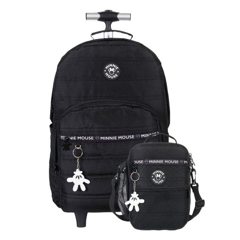 A Kit Mochila De Rodinha Minnie Teen T01 Preto +Lancheira da Xeryus combina praticidade e estilo com o toque especial da Minnie. Com detalhes personalizados e material resistente, é ideal para o dia a dia escolar, facilitando o transporte dos materiais e proporcionando um visual encantador.