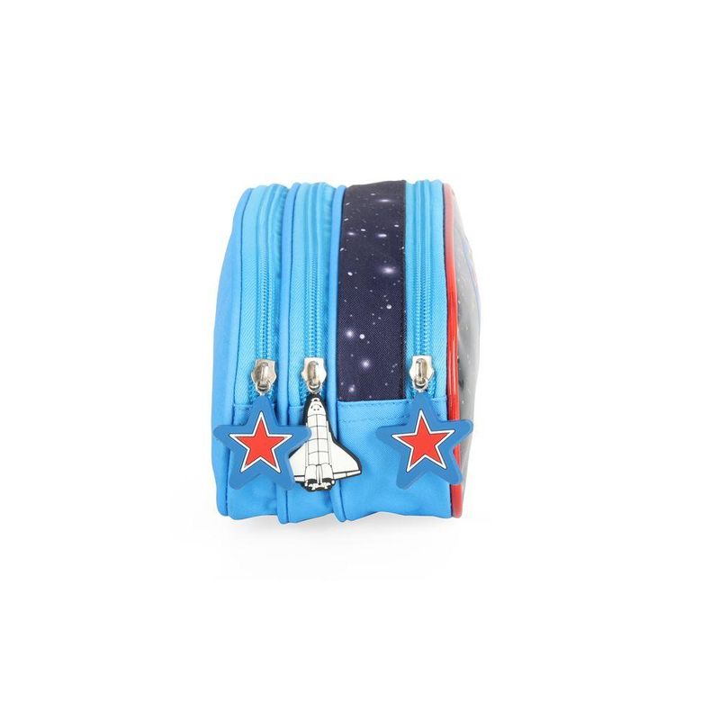 KIT MOCHILA DE RODINHAS, LANCHEIRA E ESTOJO LUXCEL Kit mochila de rodinhas com bolsos laterias em tela com elástico, sem alça de costas, silk frontal, bolso frontal com zíper, alça de mão. Lancheira estampada com alça de costas e alça de mão, além de etiquetas personalizadas. Estojo da mesma estampa. Características Principais: Dimensões aproximadas: Mochila 41 x 30 x 14cm (AxLxP) / Lancheira: 22 x 17 x 8cm / Estojo: 8 x 20 x 10cm. Garantia contra defeito de fabricação.