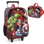 KIT MOCHILA DE RODINHAS E LANCHEIRA LUXCEL AVENGERS Kit mochila de rodinhas com bolsos laterias em tela com elástico, alças de costas espumadas e reguláveis, silk frontal, bolso frontal com zíper, alça de mão. Lancheira estampada com alça de costas e alça de mão, além de etiquetas personalizadas. Características Principais: Dimensões aproximadas: Mochila 43 x 31 x 16cm (AxLxP) / Lancheira: 23 x 19 x 10cm (LxAxP). Volume aproximado: Mochila 21 Litros / Lancheira: 4,3 Litros. Garantia contra defeito de fabricação.