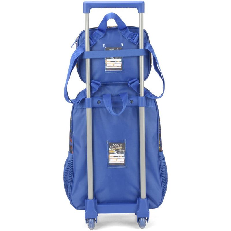 KIT MOCHILA DE RODINHAS E LANCHEIRA LUXCEL FORÇA 4 Kit mochila de rodinhas com bolsos laterias em tela com elástico, alças de costas espumadas e reguláveis, silk frontal, bolso frontal com zíper, alça de mão. Lancheira estampada com alça de costas e alça de mão, além de etiquetas personalizadas. Características Principais: Dimensões aproximadas: Mochila 43 x 31 x 16cm (AxLxP) / Lancheira: 23 x 19 x 10cm (LxAxP). Volume aproximado: Mochila 21 Litros / Lancheira: 4,3 Litros. Garantia contra defeito de fabricação.