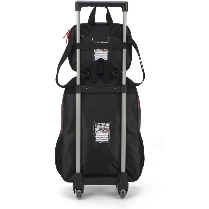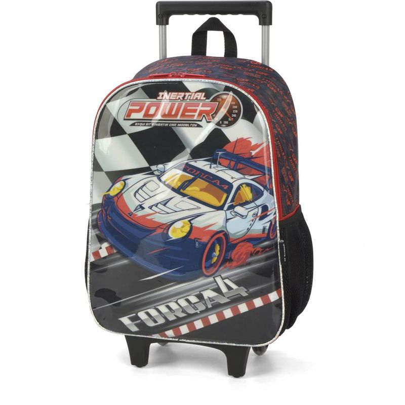 KIT MOCHILA DE RODINHAS E LANCHEIRA LUXCEL FORÇA 4 Kit mochila de rodinhas com bolsos laterias em tela com elástico, alças de costas espumadas e reguláveis, silk frontal, bolso frontal com zíper, alça de mão. Lancheira estampada com alça de costas e alça de mão, além de etiquetas personalizadas. Características Principais: Dimensões aproximadas: Mochila 43 x 31 x 16cm (AxLxP) / Lancheira: 23 x 19 x 10cm (LxAxP). Volume aproximado: Mochila 21 Litros / Lancheira: 4,3 Litros. Garantia contra defeito de fabricação.