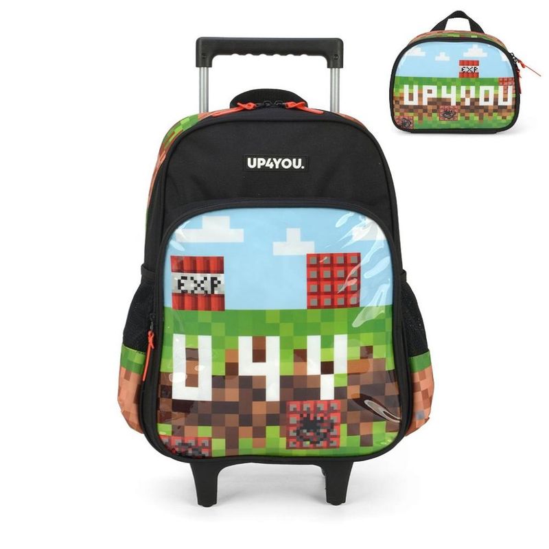 Kit Mochila de Rodinhas Lancheira Luxcel Up4You Game Preto Produto ideal para crianças de 4 a 10 anos que estão em séries iniciais. Kit Mochilete e Lancheira