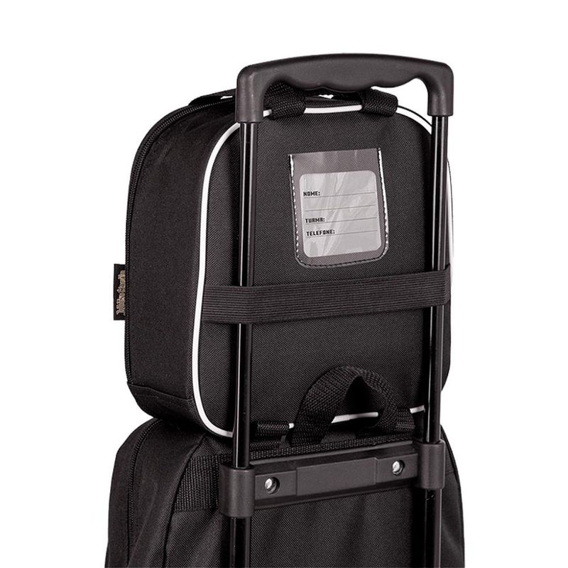 KIT MOCHILA DE RODINHAS E LANCHEIRA SESTINI Mochila de rodinhas com bolso lateral em tela com elástico, tag identificador, painel frontal em PVC, pés de apoio e etiquetas personalizadas. Lancheira escolar com estampa personalizado, fechamento em zíper e alça de costas. Características Principais: Composição: Poliéster. Dimensões: Mochila 30 x 47 x 18cm (AxLxP) / Lancheira: 22 x 18 x 9cm (LxAxP). Volume: 19 Litros. Garantia contra defeito de fabricação.