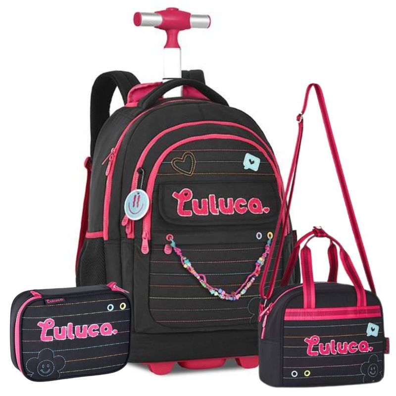 O Kit Mochila Escolar da Luluca é a escolha perfeita para quem busca estilo, praticidade e qualidade. Parte da Coleção 2025 da Luluca, este kit traz um design exclusivo, combinando nylon matelassê com detalhes coloridos, patches atoalhados e acabamentos especiais. Ideal para os fãs da Luluca, ele inclui uma mochila de carrinho espaçosa, uma lancheira térmica e um estojo com grande capacidade, garantindo organização e conforto no dia a dia escolar. Além disso, acompanha um chaveiro exclusivo da Luluca para deixar o visual ainda mais incrível!