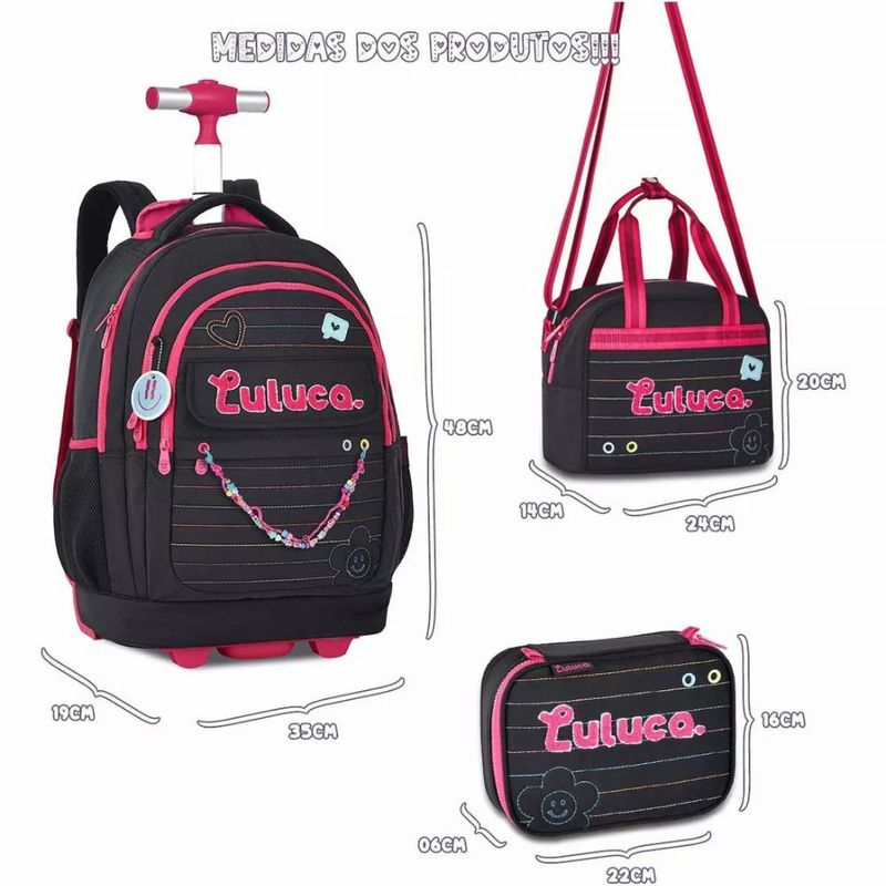 Kit Mochila Carrinho Luluca Matelassê com Lancheira e Estojo