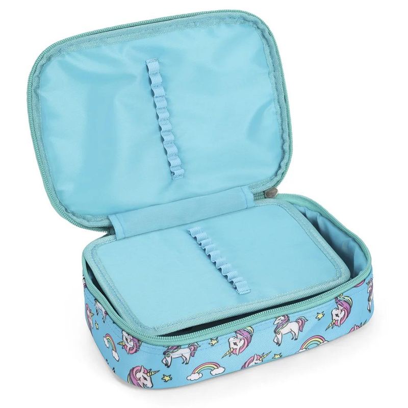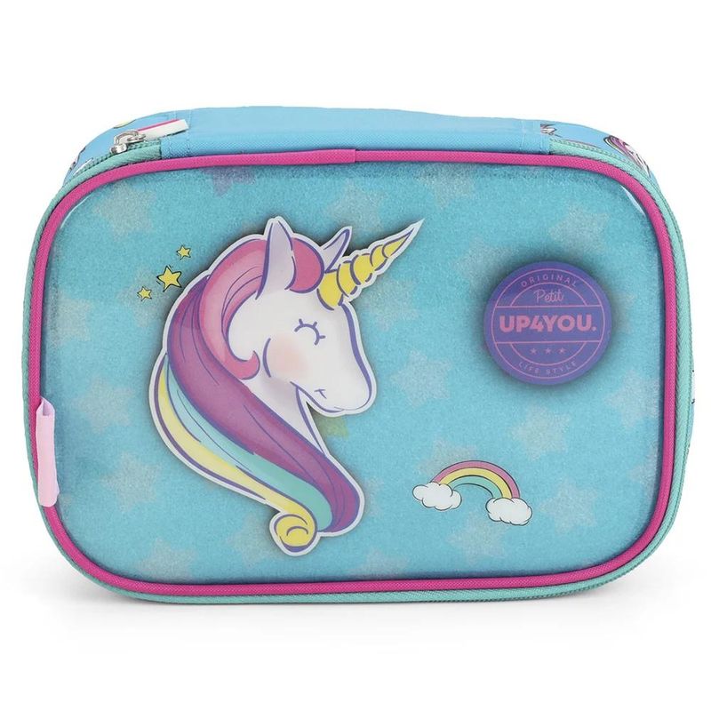 KIT MOCHILA DE RODINHAS, LANCHEIRA E ESTOJO LUXCEL Kit mochila de rodinhas com bolsos laterias em tela com elástico, alças de costas espumadas e reguláveis, silk frontal, bolso frontal com zíper, alça de mão. Lancheira estampada com alça de costas e alça de mão, além de etiquetas personalizadas. Estojo composto por uma divisória interna com elástico para separar lápis, caneta e lapiseiras, e os demais materiais vão soltos no compartimento. Características Principais: Dimensões aproximadas: Mochila 41 x 30 x 14cm (AxLxP) / Lancheira: 22 x 17 x 8cm / Estojo: 6 x 22 x 15cm. Volume aproximado: Mochila 17,5 Litros / Lancheira: 3 Litros. Garantia contra defeito de fabricação.
