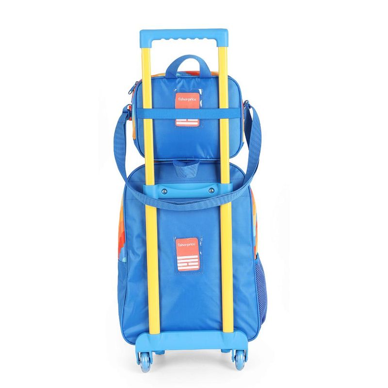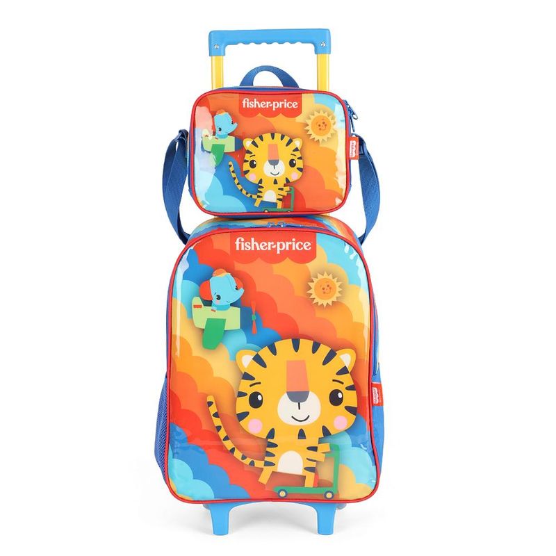 KIT MOCHILA DE RODINHAS E LANCHEIRA LUXCEL Kit mochila de rodinhas com bolsos laterias em tela com elástico, não possui alças de costas, silk frontal, alça de mão. Lancheira estampada com alça de costas e alça de mão, além de etiquetas personalizadas. Características Principais: Dimensões aproximadas: Mochila 41 x 30 x 14cm (AxLxP) / Lancheira: 22 x 17 x 8cm (LxAxP). Volume aproximado: Mochila 21 Litros / Lancheira: 4,3 Litros. Garantia contra defeito de fabricação.