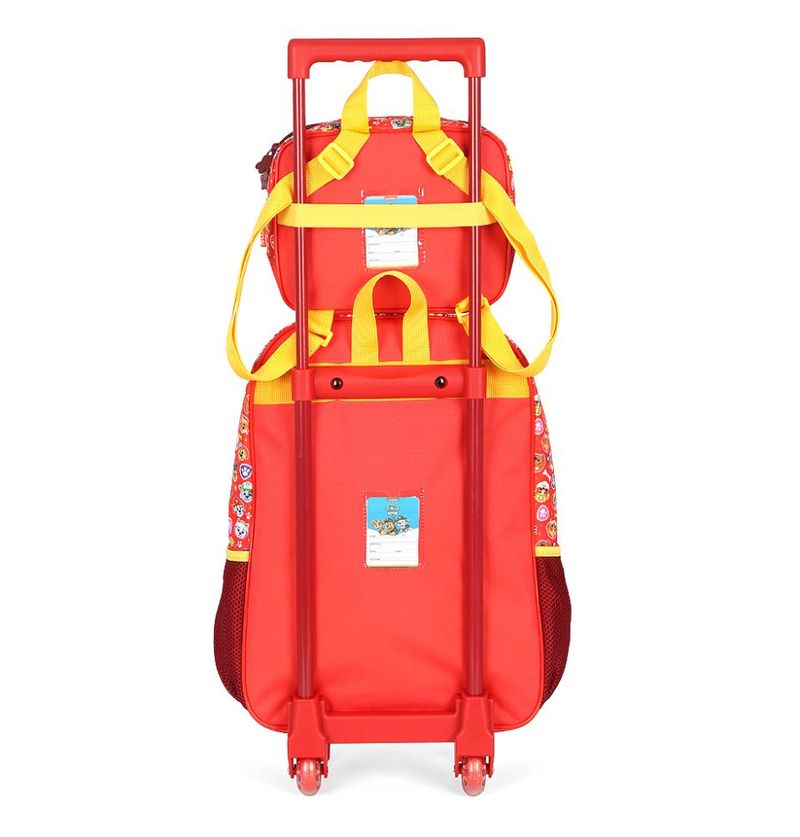 KIT MOCHILA DE RODINHAS E LANCHEIRA LUXCEL Kit mochila de rodinhas com bolsos laterias em tela com elástico, sem alças de costas, silk frontal, alça de mão. Lancheira estampada com alça de costas e alça de mão, além de etiquetas personalizadas. Características Principais: Dimensões aproximadas: Mochila 41 x 30 x 14cm (AxLxP) / Lancheira: 22 x 17 x 8cm (LxAxP). Volume aproximado: Mochila 17,5 Litros / Lancheira: 3,2 Litros. Garantia contra defeito de fabricação.