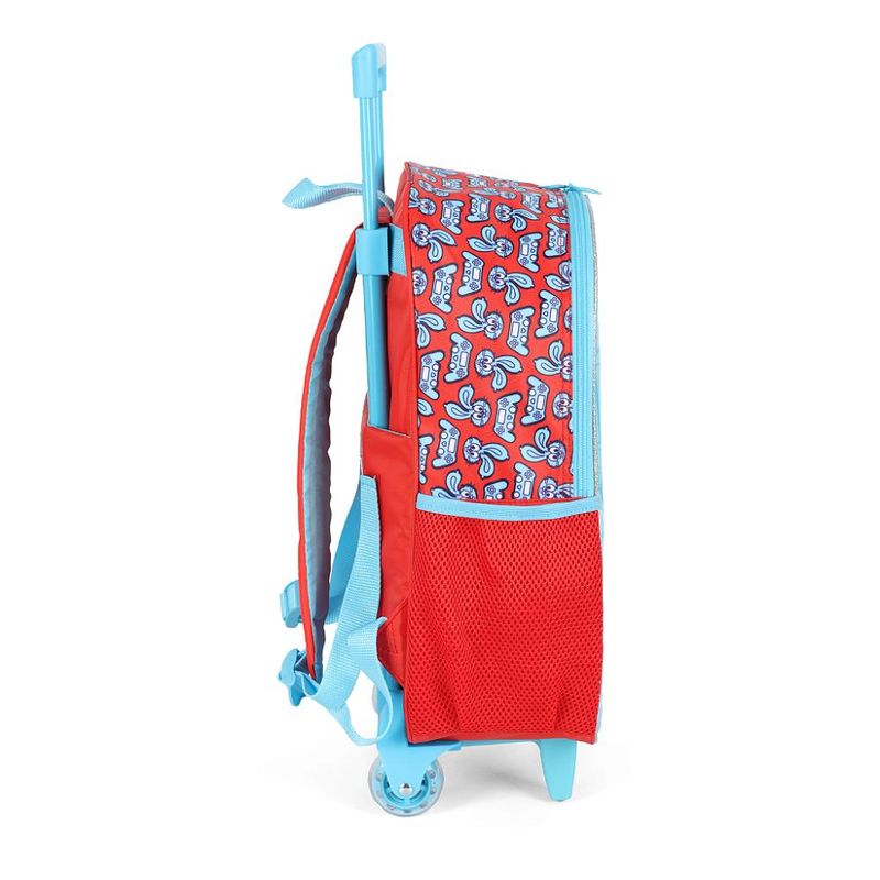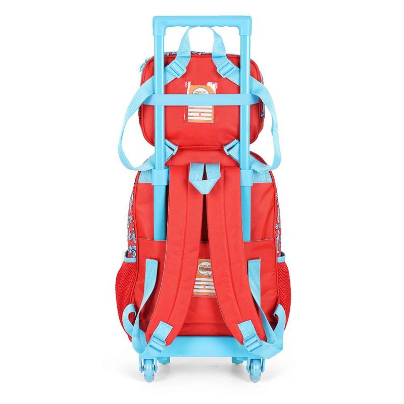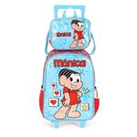 KIT MOCHILA DE RODINHAS E LANCHEIRA LUXCEL TURMA DA MÔNICA Kit mochila de rodinhas com bolsos laterias em tela com elástico, alças de costas espumadas e reguláveis, silk frontal, bolso frontal com zíper, alça de mão. Lancheira estampada com alça de costas e alça de mão, além de etiquetas personalizadas. Características Principais: Dimensões aproximadas: Mochila 41 x 30 x 14cm (AxLxP) / Lancheira: 22 x 17 x 8cm (LxAxP). Volume aproximado: Mochila 17,5 Litros / Lancheira: 3,2 Litros. Garantia contra defeito de fabricação.
