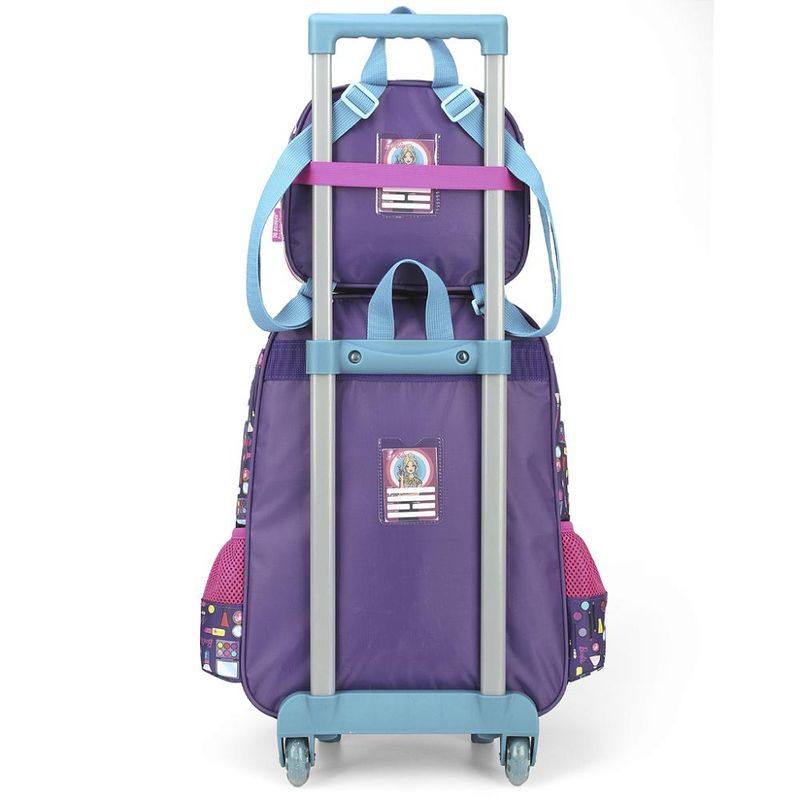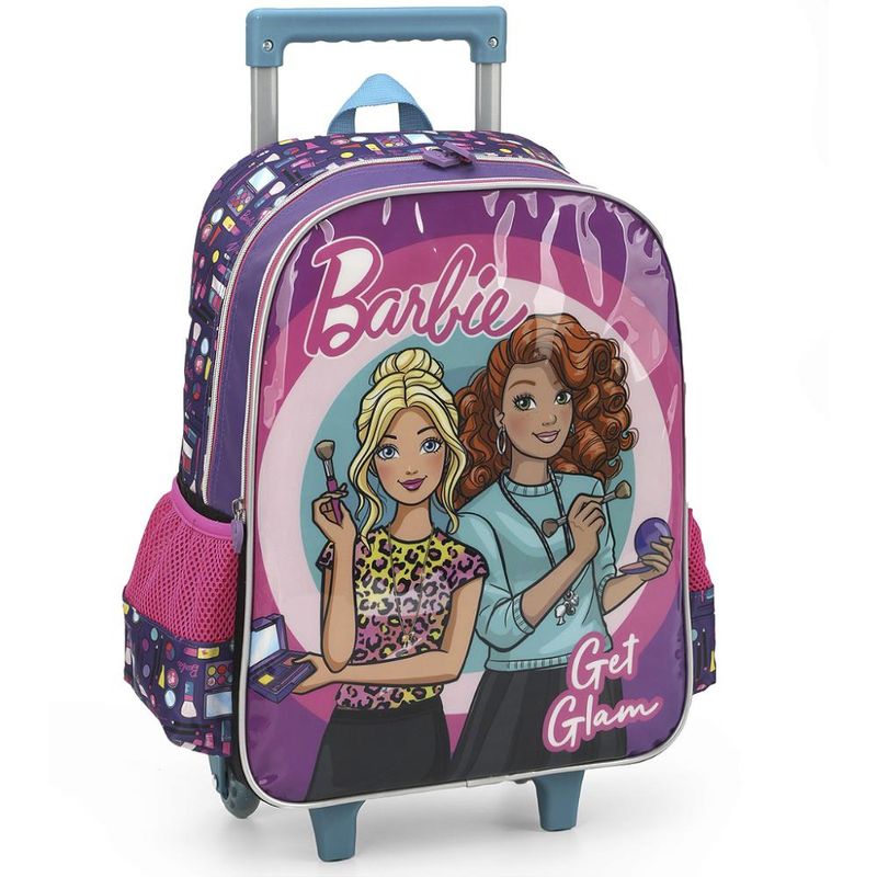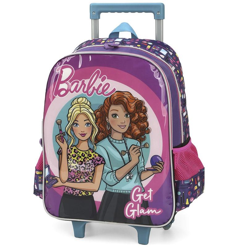 KIT MOCHILA DE RODINHAS E LANCHEIRA LUXCEL BARBIE Kit mochila de rodinhas com bolsos laterias em tela com elástico, alças de costas espumadas e reguláveis, silk frontal, bolso frontal com zíper, alça de mão. Lancheira estampada com alça de costas e alça de mão, além de etiquetas personalizadas. Características Principais: Dimensões aproximadas: Mochila 41 x 30 x 14cm (AxLxP) / Lancheira: 23 x 19 x 10cm (LxAxP). Volume aproximado: Mochila 17,5 Litros / Lancheira: 4,2 Litros. Garantia contra defeito de fabricação.
