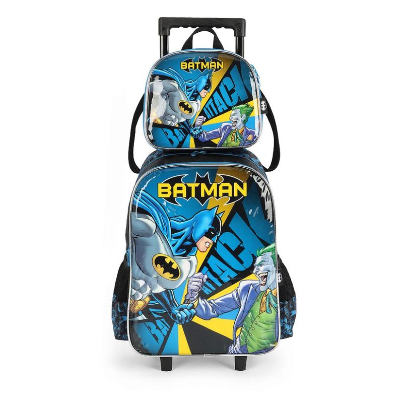 KIT MOCHILA DE RODINHAS E LANCHEIRA LUXCEL Kit mochila de rodinhas com bolsos laterias em tela com elástico, não possui alças de costas, silk frontal, alça de mão. Lancheira estampada com alça de costas e alça de mão, além de etiquetas personalizadas. Características Principais: Dimensões aproximadas: Mochila 41 x 30 x 14cm (AxLxP) / Lancheira: 22 x 17 x 8cm (LxAxP). Volume aproximado: Mochila 21 Litros / Lancheira: 4,3 Litros. Garantia contra defeito de fabricação.