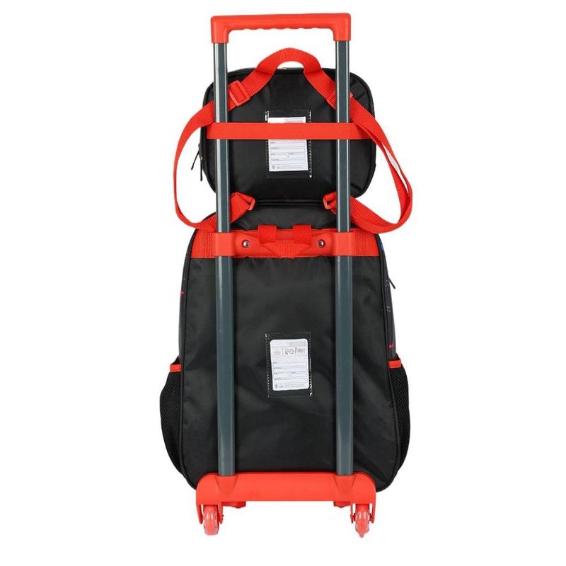 KIT MOCHILA DE RODINHAS E LANCHEIRA LUXCEL Kit mochila de rodinhas com bolsos laterias em tela com elástico, não possui alças de costas, silk frontal, alça de mão. Lancheira estampada com alça de costas e alça de mão, além de etiquetas personalizadas. Características Principais: Dimensões aproximadas: Mochila 41 x 30 x 14cm (AxLxP) / Lancheira: 22 x 17 x 8cm (LxAxP). Volume aproximado: Mochila 21 Litros / Lancheira: 4,3 Litros. Garantia contra defeito de fabricação.