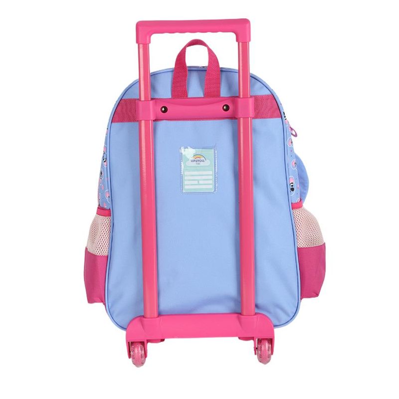 KIT MOCHILA DE RODINHAS, LANCHEIRA E ESTOJO LUXCEL Kit mochila de rodinhas com bolsos laterias em tela com elástico, sem alça de costas, silk frontal, bolso frontal com zíper, alça de mão. Lancheira estampada com alça de costas e alça de mão, além de etiquetas personalizadas. Estojo da mesma estampa. Características Principais: Dimensões aproximadas: Mochila 41 x 30 x 14cm (AxLxP) / Lancheira: 22 x 17 x 8cm / Estojo: 8 x 20 x 10cm. Garantia contra defeito de fabricação.