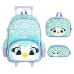 KIT MOCHILA DE RODINHAS, LANCHEIRA E ESTOJO LUXCEL Kit mochila de rodinhas com bolsos laterias em tela com elástico, sem alça de costas, silk frontal, bolso frontal com zíper, alça de mão. Lancheira estampada com alça de costas e alça de mão, além de etiquetas personalizadas. Estojo da mesma estampa. Características Principais: Dimensões aproximadas: Mochila 41 x 30 x 14cm (AxLxP) / Lancheira: 22 x 17 x 8cm / Estojo: 8 x 20 x 10cm. Garantia contra defeito de fabricação.