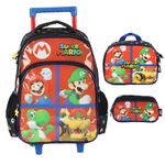 KIT MOCHILA DE RODINHAS, LANCHEIRA E ESTOJO LUXCEL Kit mochila de rodinhas com bolsos laterias em tela com elástico, sem alça de costas, silk frontal, bolso frontal com zíper, alça de mão. Lancheira estampada com alça de costas e alça de mão, além de etiquetas personalizadas. Estojo da mesma estampa. Características Principais: Dimensões aproximadas: Mochila 41 x 30 x 14cm (AxLxP) / Lancheira: 22 x 17 x 8cm / Estojo: 8 x 20 x 10cm. Garantia contra defeito de fabricação.