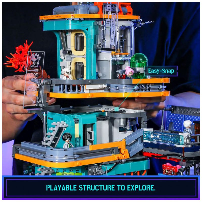 O sistema de iluminação utiliza cerca de 21 pontos de LED distribuídos em painéis, letreiros e guias de luz, criando efeito de néon característico de cenários cyberpunk. O conjunto foi projetado para operar com um sistema de alimentação único, permitindo conectar outros módulos da mesma linha a uma única fonte de energia.??