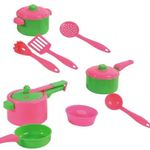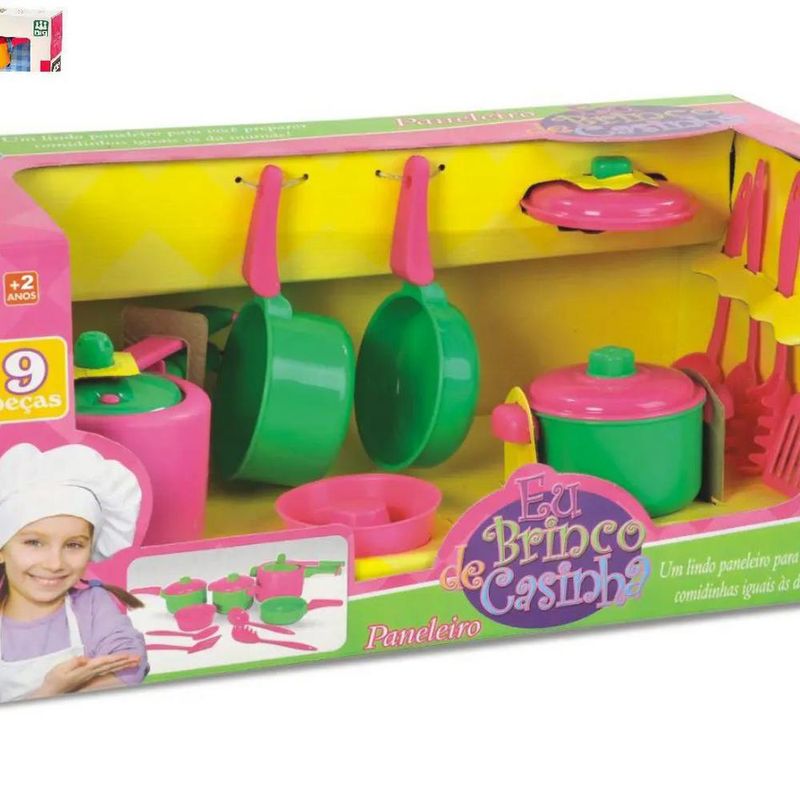 Kit Paneleiro Infantil 9 Peças - NIG Brinquedos A casinha vai ficar igual à da mamãe com este conjunto de panelas super colorido! Kit com 01 panela de pressão 01 caçarola, 01 frigideira, 01 panela com tampa, 04 talheres grandes (escumadeira, concha, espátula e pegador de macarrão) e 01 forminha de bolo. Medidas da Embalagem: Peso: 500 g Altura: 48 cm Largura: 28 cm Comprimento: 19 cm