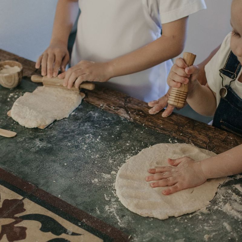 Amassar, socar, sovar, estender a massa, cortar... são diversas as etapas culinárias que os pequenos podem experienciar brincando de fazer comidinha.