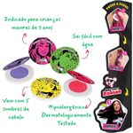 Acompanha 5 sombras coloridas para cabelo, cada uma com embalagem personalizada de um integrante da Turma dos Rosa. Basta abrir, colocar a mecha no meio, deslizar e pronto: os fios ganham cores incríveis em segundos! E quando a brincadeira acabar, a cor sai facilmente apenas com água.