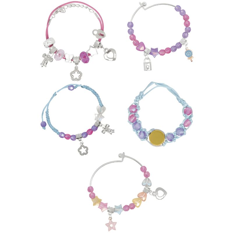 Conteúdo da Embalagem: 02 pulseirinhas cruas e várias peças para decorar