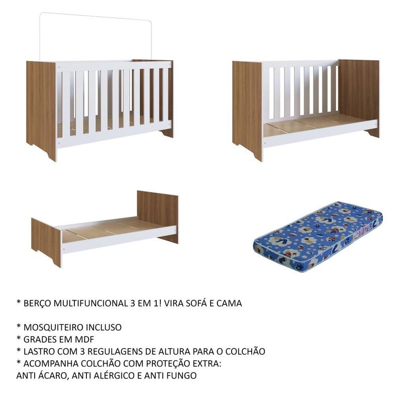 - 3 Opções de Montagem: Berço, Sofá e Mini Cama