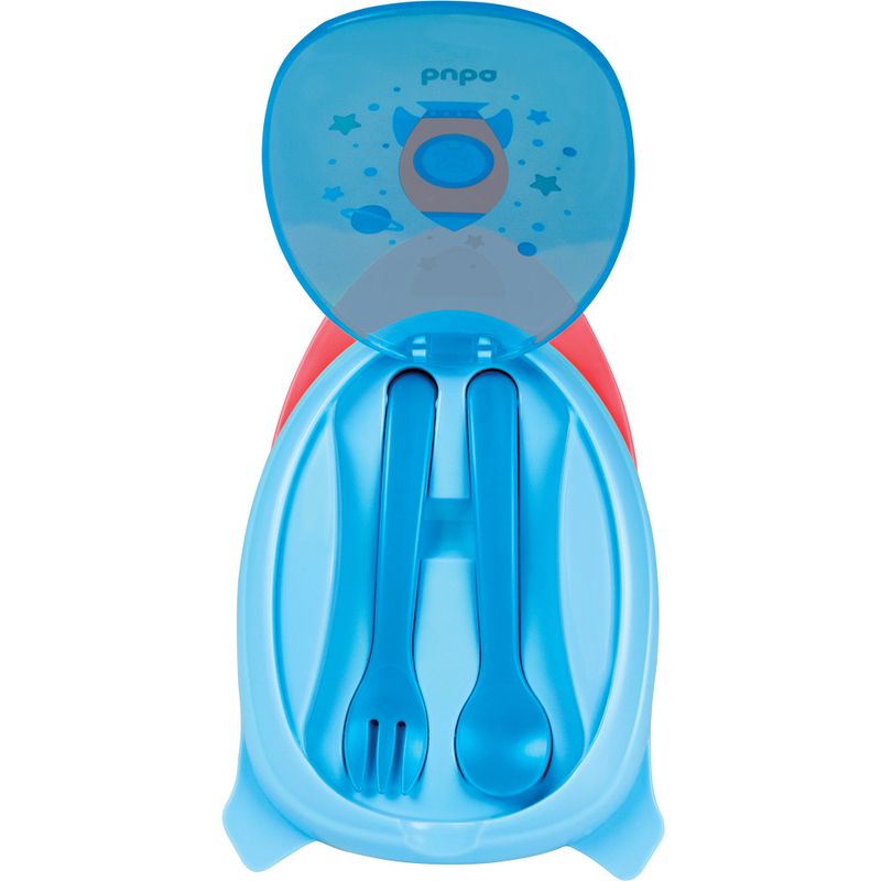 Kit com: 1 bowl com tampa, 1 colher, 1 garfo