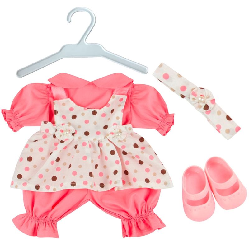 KIT CONTÉM: 01 VESTIDO SALOPETE, 01 CAMISA, 01 SHORTINHOS BUFANTE, 01 FAIXA DE CABELO, 01 PAR DE SAPATILHAS SOLA 07CM ROSA E 01 CABIDE