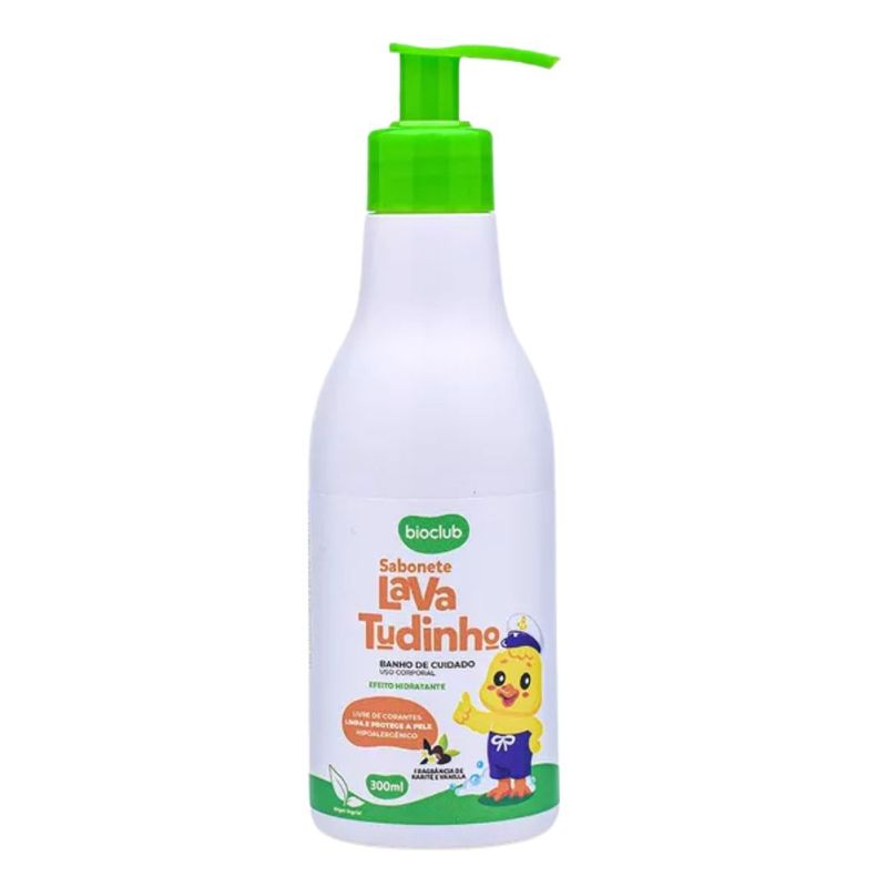 O sabonete líquido Lava Tudinho Bioclub foi desenvolvido com ingredientes suaves e possui uma exclusiva fórmula para limpar suavemente o bebê. Limpa delicadamente enquanto ajuda a manter a pele macia e hidratada. Sem álcool. Dermatologicamente testado. Hipoalergênico. Esse produto foi formulado de maneira a minimizar possível surgimento de alergia. Não contém etanol.