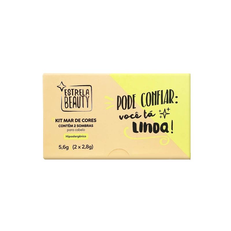 Produto exclusivo e pioneiro da Estrela Beauty, colore sem prejudicar os fios de cabelo. O kit de Sombras para Cabelo é composto por duas cores. É seguro, atóxico, formulado exclusivamente para crianças a partir de 3 anos. (Diferente de sprays e outros).