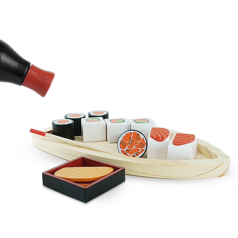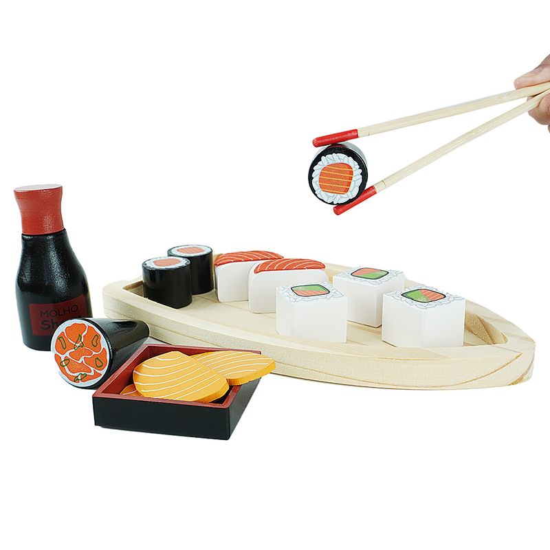 Com o nosso Kit Sushi em Madeira as crianças vão poder brincar de cozinha em grande estilo, levando a imaginação para um mundo de faz de conta, onde elas vivenciam situações de seu cotidiano de maneira lúdica e criativa! O Kit Sushi Infantil é fabricado 100% em madeira, garantindo assim maior durabilidade, além de estimular os sentidos pela sua textura, peso e cheiro. Este Brinquedo ajuda no Desenvolvimento: Coordenação Espacial