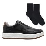 O Tênis Democrata Denim Drake Pulse Masculino é um calçado confortável e leve, ideal para diversas ocasiões. Com um cabedal em couro, seu design inclui fechamento por cadarço, detalhes perfurados e em pesponto, bico arredondado e palmilha de P.U proporcionando conforto e maciez para os seus pés. O solado é feito de T.P.U, que garante mais durabilidade e uma excelente aderência em todos os tipos de piso. Sua entressola apresenta a tecnologia Pulse, que aumenta o conforto, além de que ela devolve o impacto de cada passada como impulso. Com o conceito Denim, este tênis oferece liberdade para transitar de uma reunião de trabalho para um happy hour, mantendo um visual bem vestido. Já as meias, por sua vez, são fabricadas a base de algodão e poliamida, fornecendo maior frescor e um toque suave aos pés. Possui cano médio, garantindo maior proteção, além de contar com sola atoalhada e costuras reforçadas, concedendo maior durabilidade a peça. O tamanho da meia pode variar de acordo com a numeração da bota. Referência do sapatênis: 600101-001.