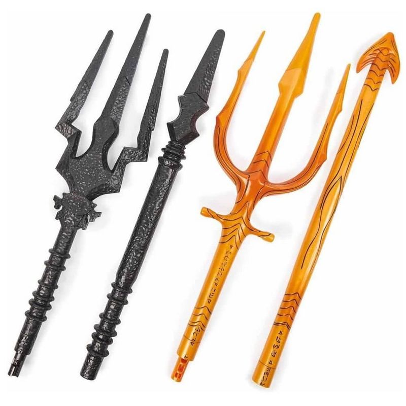 Torne-se o Aquaman e Arraia Negra com os tridentes inspirados no filme Aquaman 2: O Reino Perdido! Os tridentes tem 89cm de comprimento cada e possuem detalhes autênticos do filme.