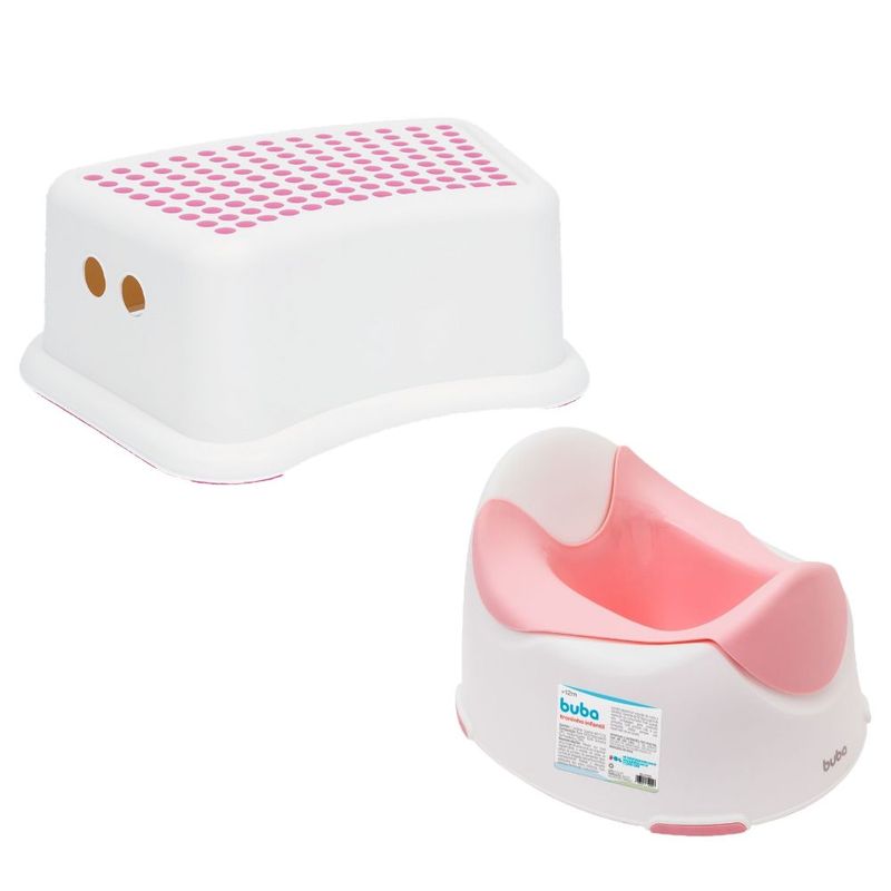 BABYHIGIENE DO BEBÊTRONINHOKIT TRONINHO E DEGRAU INFANTIL SANITÁRIO PINICO PRIVADINHA BEBE ANTIDERRAPANTE COM RECIPIENTE REMOVÍVEL BUBA Cor:Rosa