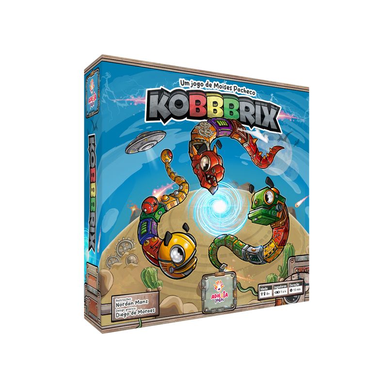 Sejam bem-vindos ao mundo de Kobbbrix, o jogo de tabuleiro cooperativo que traz uma nova abordagem para o famoso jogo da cobrinha de celular. Em Kobbbrix, vocês assumem o controle de cobras robóticas espaciais em um mundo desértico, onde precisam consumir vórtices de energia dimensional para sobreviver.