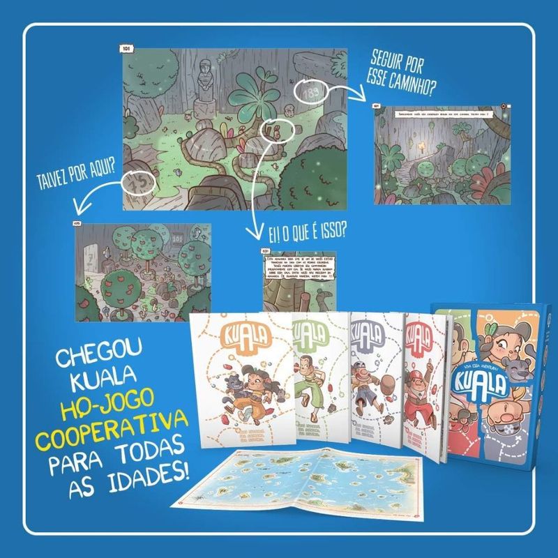 Solucione Enigmas, descubra passagens secretas, e se esquive das várias armadilhas que te aguardam, tudo isso usando as habilidades únicas de cada um dos filhos do famosos explorador Robinson Crusoé. Kuala, o primeiro quadrinho jogo cooperativo da coleção “Viva essa aventura!”