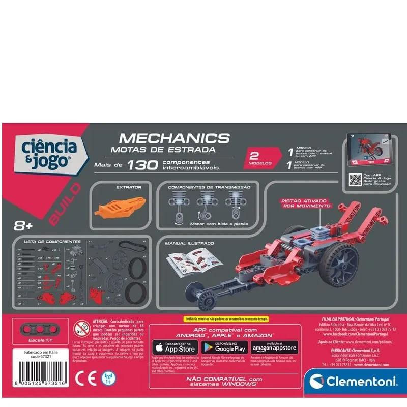 Construa e divirta-se com a Moto de Estrada O Laboratório de Mecânica Moto de Estrada da Fun é um kit científico importado da Itália que proporciona uma experiência educativa e divertida para crianças e adolescentes.Idade Recomendada: A partir dos 8 anos de idade. Contém: 1 kit de construção com 130 peças que permitem construir 2 modelos de motos de estrada, um roadster ou um dragster.