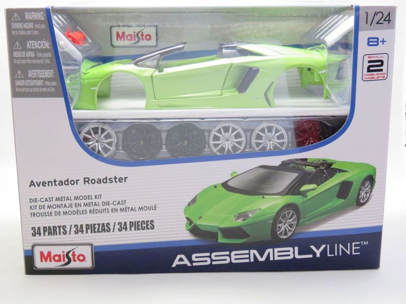 Lamborghini Aventador RoadsterMarca do produto: Maisto.Coleção: Kit em Metal p/ Montar - Assembly Line.Pneus de Borracha.Abre as Portas e Capô Traseiro.Corpo e Chassi de Metal.Contém 34 Peças.Escala: 1/24 (aproximadamente 17,5 cm de comprimento).