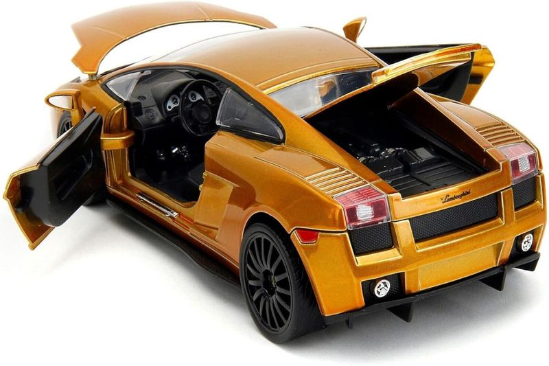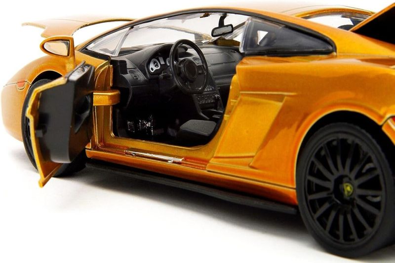 Lamborghini GallardoMarca do produto: Jada.Coleção: Velozes e Furiosos (Fast & Furious)Escala: 1/24 (aproximadamente 19 cm de comprimento).Pneus de Borracha.Abre as Portas, Capô e Porta-malas.Miniatura em Metal com partes de plástico.