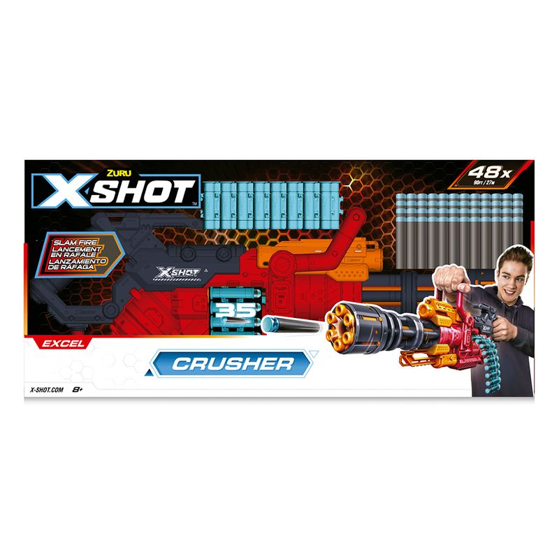 O novo lançador X-Shot Crusher é perfeito para aventuras radicais! Ele tem uma correia de munição giratória com capacidade de 35 dardos que alcançam até 27 metros de distância com muita precisão! E quando a disputa ficar intensa, é só segurar o gatilho para lançar até 4 dardos por segundo. Com o lançador X-Shot Crusher a brincadeira vai ficar muito mais eletrizante! Acompanha 48 dardos de espuma. Lançador compatível com os principais dardos do mercado.