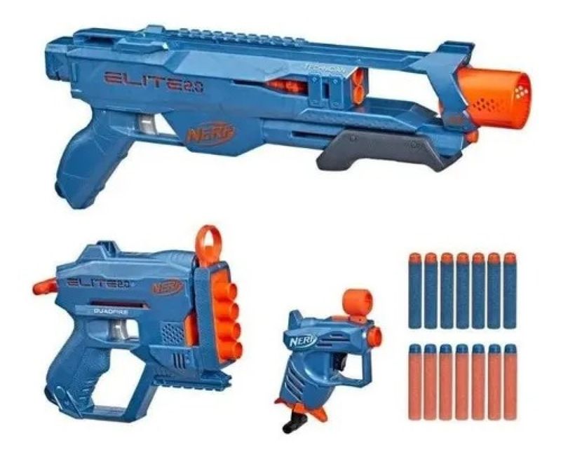 Lançador Dardos Nerf Elite 2.0 Loadout Pack – Kit Com 3 Nerf - Hasbro aventura fica mais ainda divertida com este kit com 3 lançadores Nerf Elite 2.0! O kit vem com os lançadores: Technician DS-2 que lança 2 dardos seguidos por bombeamento, possui trilho tático e encaixe para apoiador (apoio não incluído). Quadfire QS-4 que lança 4 dardos seguidos, possui carregador manual e mira integrada. E o lançador Ace SD-1 que lança 1 dardo, possui mira integrada e porta-dardos para 1 dardo extra. O kit Nerf Elite 2.0 Loadout vem 14 dardos Nerf Elite, quantidade suficiente para carregar os lançadores e dardos extras para recargas rápidas. Idade acima de 8 anos Contem 3 lançador 14 dardos. Tamanho da embalagem 52 x 29 x 6,5 cm Fabricante Hasbro