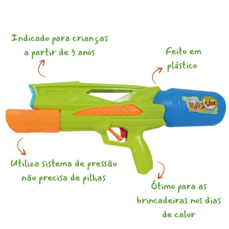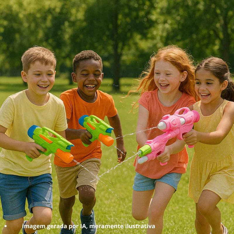 Ideal para crianças e adultos, o lançador de água é leve, seguro e feita com material resistente. Basta encher, mirar e... disparar!