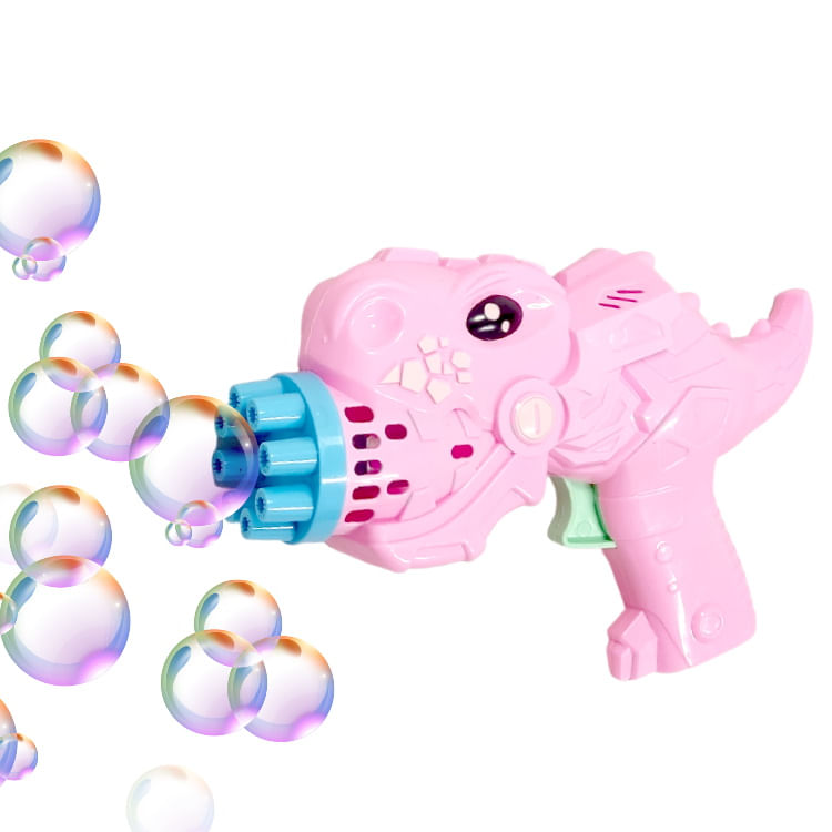 Lançador de Bolhas de Sabão Automático Infantil Dinossauro Rosa