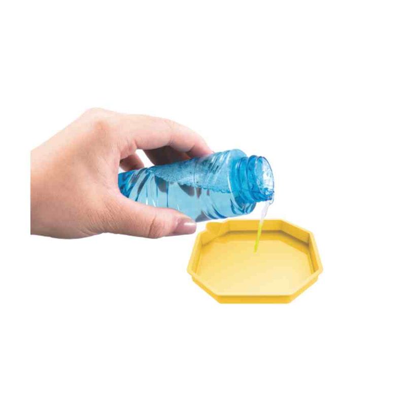 Basta despejar o liquido no recipiente, mergulhar o lançador e apertar o gatilho