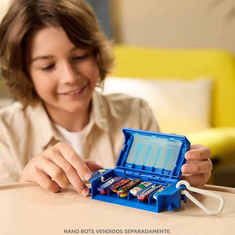 No universo dos Hexbots, a aventura nunca tem fim. O Lançador de Nano Bots é uma peça chave para quem deseja explorar um mundo repleto de possibilidades. Com a capacidade de lançar até 6 nano bots de uma vez, ele leva a diversão a um novo nível. Cada disparo provoca ação e exige estratégia, enquanto os bots ganham vida e enfrentam novos desafios. Integrante da linha Hexbots, esse brinquedo mistura tecnologia e criatividade de maneira única. Compacto e empolgante, o Lançador de Nano Bots é a escolha ideal para quem se encanta com inovação e busca uma experiência interativa e cheia de emoção. Outros nano bots são vendidos separadamente, permitindo expandir a diversão com mais bots. - 2 PILHAS AG13 (LR41) de 1,5 V (INCLUSAS) - CONTEUDO DA EMBALAGEM 1 lançador e 1 nano bot.