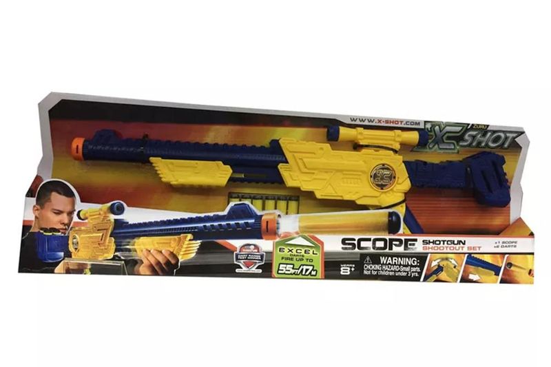 Com o Lancador de Dardos - X-Shot - Scope Shotgun da Candide a brincadeira entre amigos fica ainda mais emocionante. O Lancador de Dardos - X-Shot - Scope Shotgun da Candide vem com 6 dardos de espuma. Carregue seu Lancador e prepare-se para testar sua pontaria. O lancador alcanca ate 10 metros de distancia.